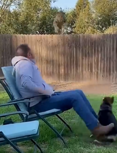 A man was relaxing in his backyard when a leopard suddenly leaped over the high fence and charged at him. Before the predator could reach, his loyal dog sprang into action, barking fiercely and attacking the leopard to protect its owner. The man escaped unharmed thanks to his brave companion. “Every video on this channel is an AI-generated reimagination. No real animals or people were involved or harmed in the process.”
