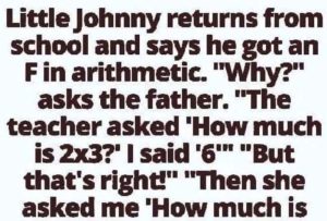 Johnny’s math teacher never stood a chance. The kid’s logic was flawless — if three times two equals six, then two times three must be the same thing, right? But what Johnny didn’t know was that teachers have little patience for smart-aleck comebacks. His dad, however, couldn’t help but laugh at the boy’s cheeky wit. It wasn’t that Johnny hated math — he just had the kind of brain that preferred humor over homework, and maybe, just maybe, that was worth more than an A-plus any day.