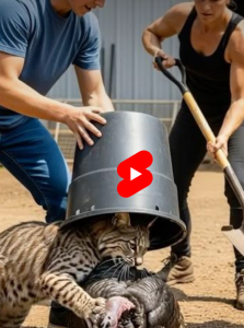 A lynx suddenly attacks a pheasant on the farm, pinning it to the ground. One farmer quickly covers the lynx’s head with a large bucket while the other rushes in with a shovel to drive the predator away. Their fast coordination saves the pheasant just before it is taken. “Every video on this channel is an AI-generated reimagination. No real animals or people were involved or harmed in the process.”