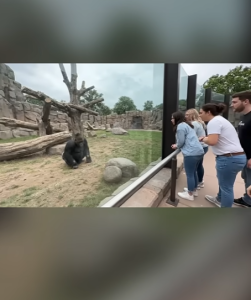 According to zoo officials, the gorilla—one of the facility’s largest males—became agitated after noticing a group of visitors hitting on the glass and making sudden movements. In response, the animal charged toward the barrier and slammed it with both hands, causing the reinforced safety glass to fracture but not fully break through.