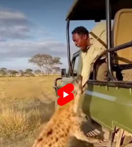 A hyena suddenly leaps toward a safari vehicle, snapping at a terrified tourist. Before the situation worsens, a massive buffalo charges in and slams the hyena away, forcing it to retreat. The tourist escapes unharmed thanks to the buffalo’s unexpected intervention. “Every video on this channel is an AI-generated reimagination. No real animals or people were involved or harmed.”