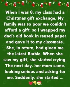 My family was so poor we couldn’t afford a gift, so I wrapped one of my dad’s old books in reused gift paper and gave it to my classmate.