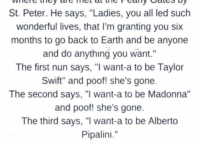 “I want-a to be Alberto Pipalini,” the third nun said softly, the name possessing a quiet, almost unassuming resonance.