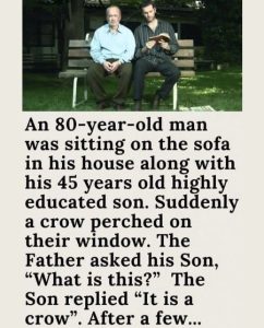 “What is this?” the Father questioned his Son. It’s a crow, the Son retorted. The Father asked his Son “What is this?” for the second time after a short while. “Father, I just told you “It’s a crow,” the Son said. After a short period, the elderly father asked his Son, “What is this?” a third time. When the Son said to his Father with a rebuke at this point, there was a hint of annoyance in his tone. Crow, crow, it’s a crow.After a short while, the Father questioned his Son for the fourth time, “What is this?”
