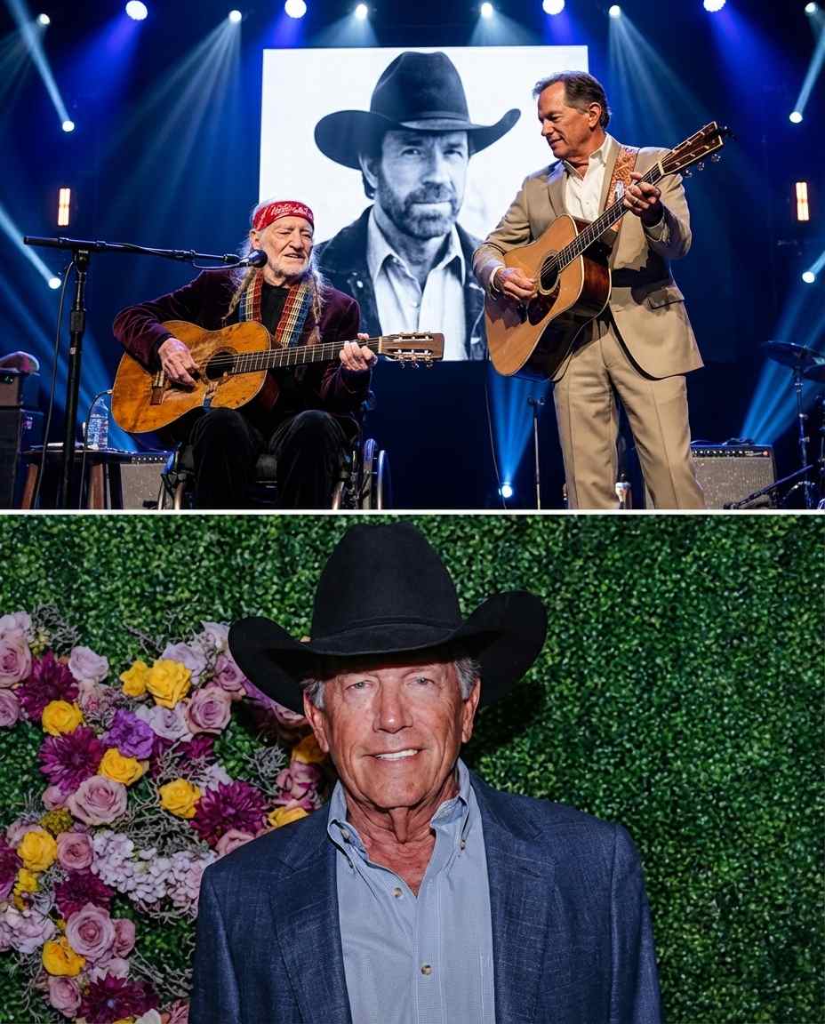 In the world of country music, few moments are as unforgettable as the night two of the genre’s greatest icons, Willie Nelson and George Strait, shared the stage. Under the dim lights, the audience held their breath, knowing they were about to witness something extraordinary. This unexpected performance turned out to be a heartfelt tribute not only to the music but also to the legend Chuck Norris. Their performance was more than just a concert; it was a spiritual experience that resonated deeply with fans and the audience.
