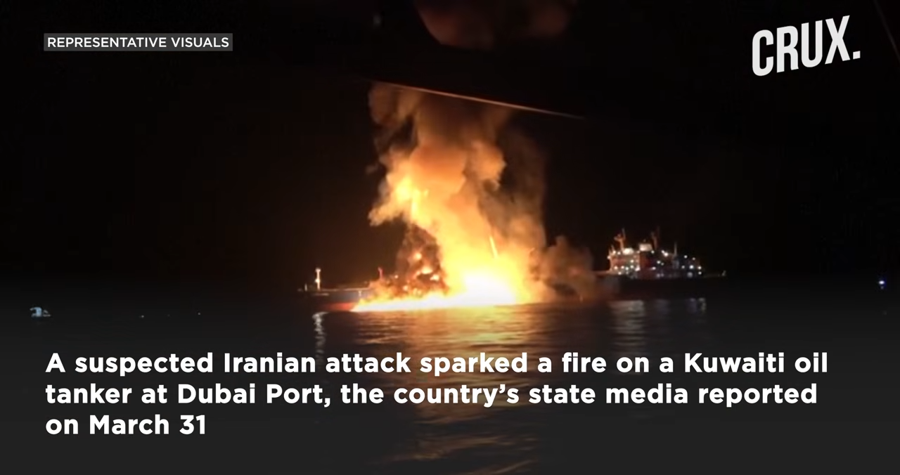 A massive Kuwaiti oil tanker, fully loaded with crude, was suddenly hit in what officials say was a drone strike linked to Iran. The impact sparked a fire along the vessel’s side, sending smoke rising into the Gulf and triggering immediate fears of a catastrophic explosion.