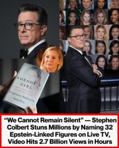 “We Cannot Remain Silent” — Stephen Colbert Stuns Millions by Naming 32 Epstein-Linked Figures on Live TV, Video Hits 2.7 Billion Views in Hours
