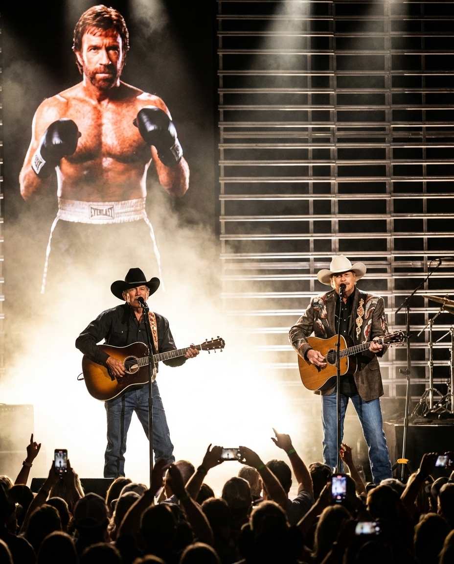 In a moment that will be etched in many hearts, country music legends George Strait and Alan Jackson stood side by side to remember Chuck Norris, a musical icon. As the room filled with family, friends, and fans, the atmosphere was steeped in emotion, a testament to the profound influence Norris had on countless lives.